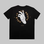 T-shirt con stampa di mano e falange scheletrica, per chi fa della città e della roccia il suo terreno di gioco, con stile.